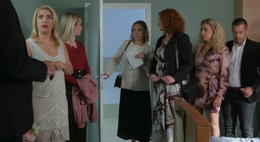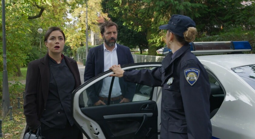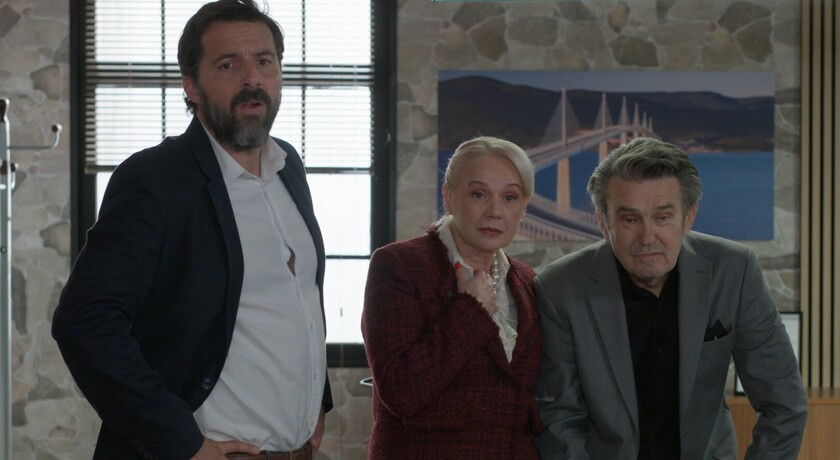 Svi su zatečeni kad ugledaju Veljkove žene na vijestima kako „časte“ jedna drugu, a i Veljka. Zrinka plasira novinarima informaciju o Marininoj deportaciji.