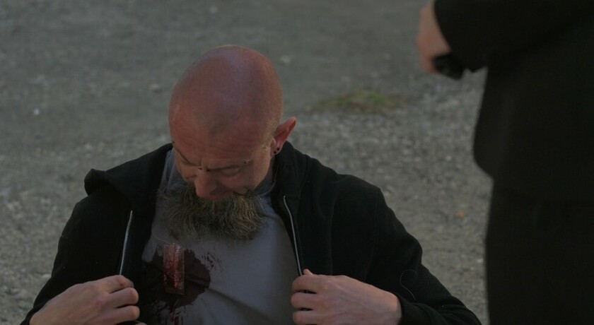 Čim ostane sam, Crni prilazi Zoranovu "nepomičnom" tijelu, uzima pištolj i cimne ga. Zoran se diže i gunđa zašto su baš svinjsku krv morali koristiti za lažiranje smrti. Koliko god bio grozan, ne može vjerovati dokle je Crni spreman ići samo da napakosti zetu. Crni mu daje do znanja da to nije njegova briga, kratko mu zahvali i njih dvojica se razilaze.