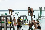 U međuvremenu će se oba plemena suočiti s izazovom na poligonu u moru, gdje će snaga i koordinacija biti presudne. Natjecatelji će morati djelovati kao tim. Četvero njih nosit će jednog člana koji će prelaziti platforme sve do cilja. Uz plemenski imunitet, pobjednike će čekati i slatka nagrada: čokoladni muffini i ledena kava.